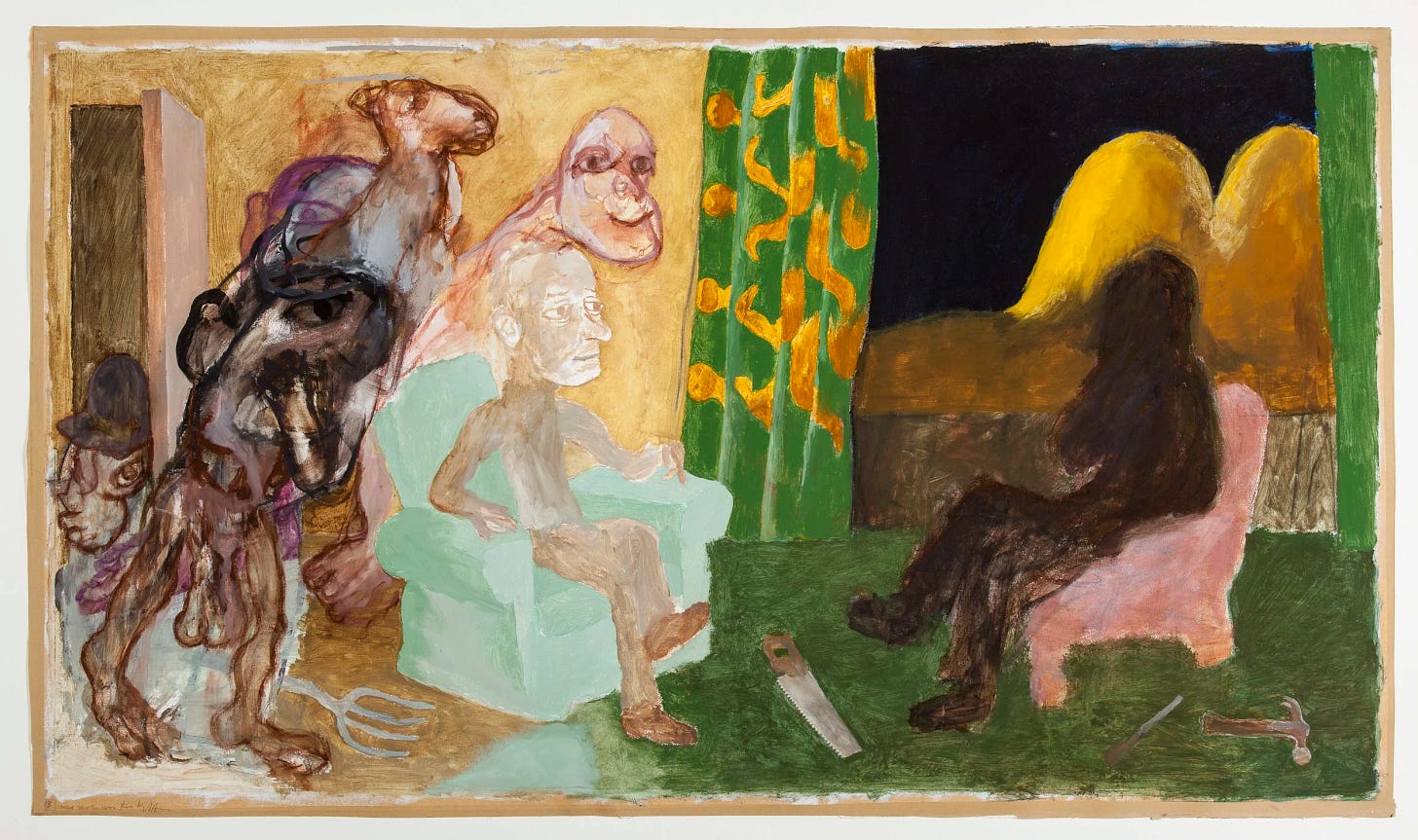 Read more: Biggs, I. (2024a) 'Another Modernity? Ken Kiff's Visual Poetics (Part 3)', Iain Biggs: educator / artist / researcher, 7 August (Link) | Biggs, I. (2024b) 'Another Modernity? Ken Kiff's Visual Poetics (Part 5)', Iain Biggs: educator / artist / researcher, 8 August (Link) | Eaves, W. (2019) 'Ken Kiff – The Sequence', Will Eaves, 15 April (originally published in Brixton Review of Books, Issue 5, March 2019) (Link) | Hill, E. M. (2025) 'Ken Kiff: After the Old Masters', Independent Art Fair, 12 June (Link) | Lynton, N. (2001) 'Ken Kiff', The Guardian, 15 February (Link) | Morton, T. (2023) 'The Masculine Vulnerability in Ken Kiff's Daft, Infectious Paintings', ArtReview, 25 January (Link) | Sherwin, S. (2025) 'Plasticine men and giant goddess women: why Ken Kiff's brilliant, bizarre art is getting a second look', The Guardian, 3 April (Link).